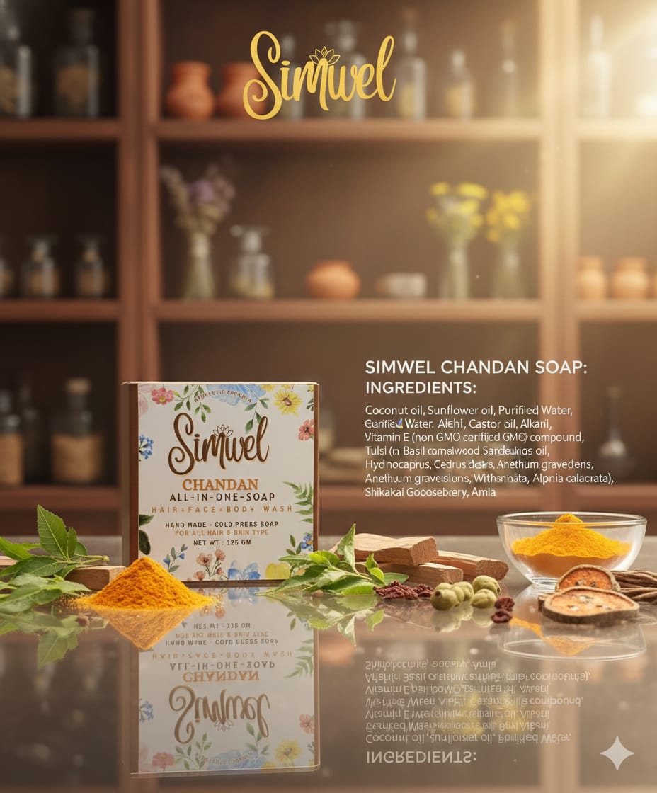 Discover the power of Ayurveda with Simwel All-In-One Soaps — thoughtfully handcrafted to care for your hair, face, and body in one simple step.
